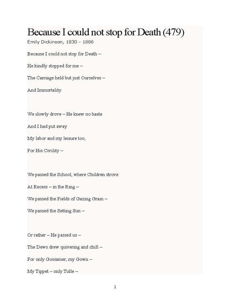 Download Emily Dickinson Because I Could Not Stop For Death Analysis Images. The fastest way to understand the poem's meaning, themes, form, rhyme scheme, meter, and poetic devices. Emily dickinson's genius for capturing the unusual and transcendent is precisely expressed in this, one of her longest and best known poems.